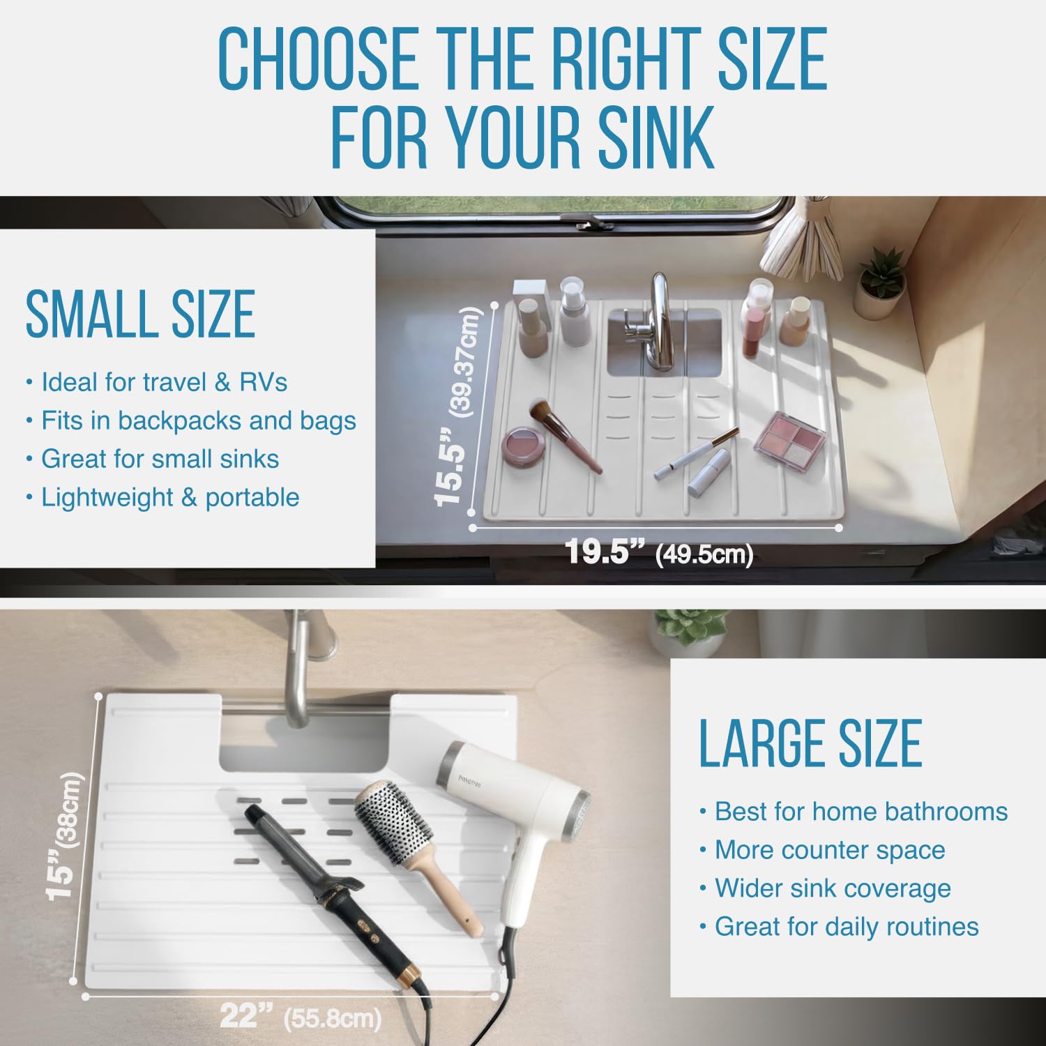 - Compact Travel Companion: This foldable sink cover for counter space makeup compacts easily to fit into any travel bag. Its portable countertop size is perfect for hotels, dorms, and camper vans, ensuring a tidy vanity area wherever you go